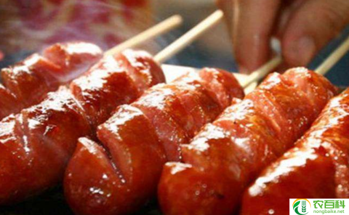 香肠是一种由猪肉、牛肉或鸡肉等肉类制成的食品。它是将精选的肉类剁碎、加入调料、盐和香料,然后填入天然或合成的肠衣中制成的。制作香肠的过程需要经过加工、熏制等环节。